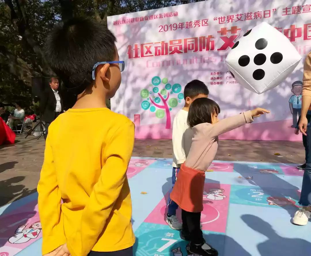 活动现场摆放了艾滋病防治核心知识宣传展板,工作人员向市民派发预防艾滋病的宣传资料。活动一开始,青春靓丽的舞蹈专业学生以歌舞快闪的方式吸引市民驻足观望。现场设有“找出危险行为”“拍照分享朋友圈”“知识问答”等游戏活动,吸引许多亲子家庭参加活动。