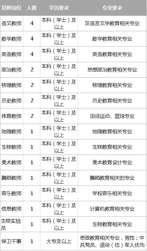 ④每个应聘者限报1个岗位(小学与初中只能选其一)