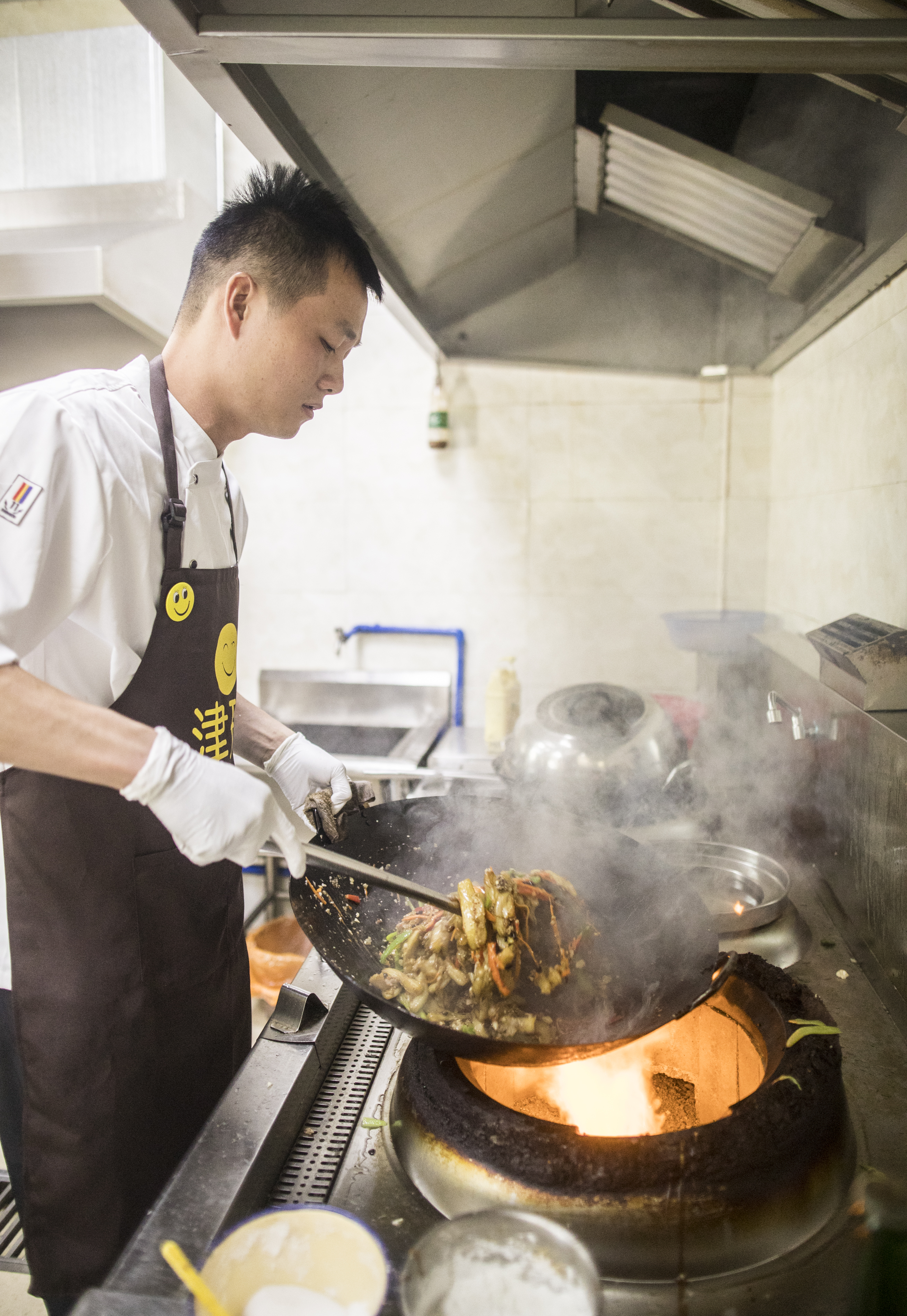 “今年年初,我被推荐去粤菜师傅工作室学习,觉得非常荣幸。”今年刚满30岁的卢韦俊,是土生土长的本地人。别看他年纪轻轻,“进厨房”也有10多年了。原来,从20世纪90年代开始,小卢一家便在莲麻村经营餐厅,青少年时期的他就开始给父母“打打下手”,可以说从小在厨房中耳濡目染了。2008年,小卢成为了一位“兵哥哥”,在潮汕地区服役;2010年,不到22岁的小卢从部队退伍,继续在家里餐厅帮忙,方便照顾父母。直到2014年,他才正式“接班”,成为餐厅主厨。