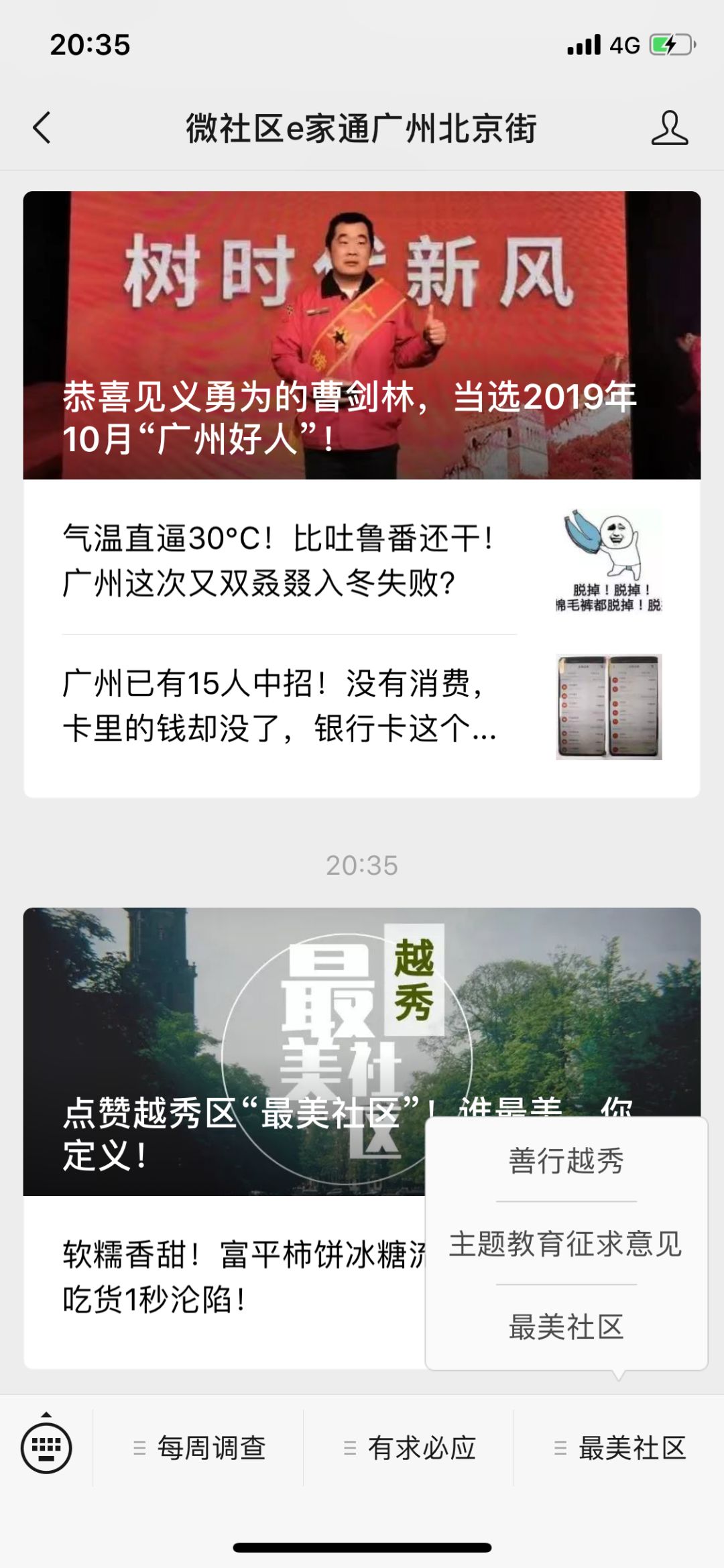 2、进入公众号,在菜单栏上选择“最美社区”,为你想点赞的“最美社区”投票!