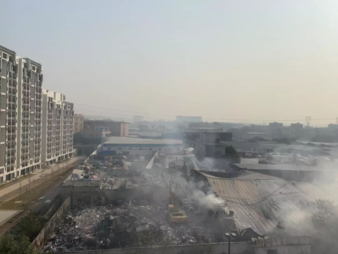 直至今天凌晨2点半,火情才得到控制,钩机开始破拆被烧毁铁棚。今晨9时许,大火被扑灭后,现场已变成一片废墟。