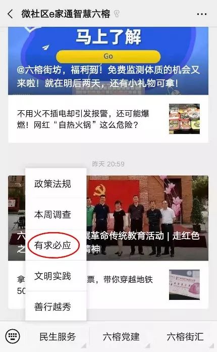 点击菜单栏【民生服务】-【有求必应】进行报料