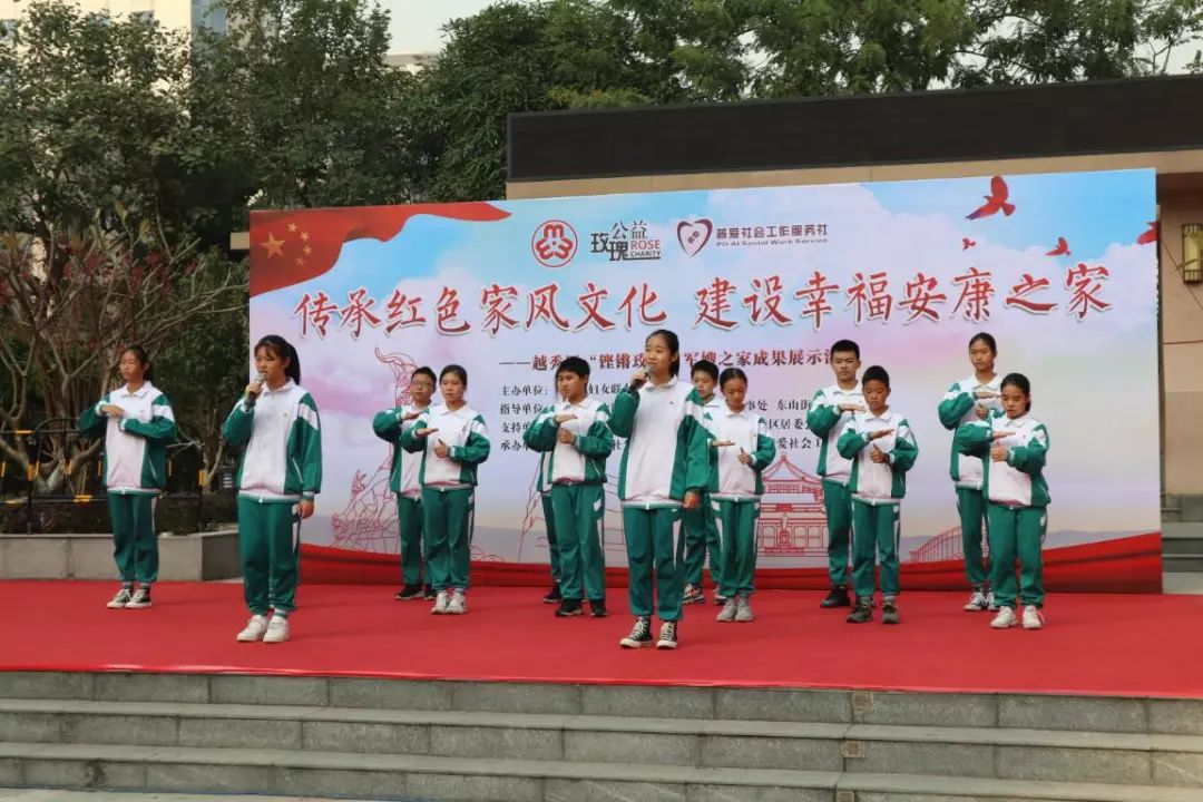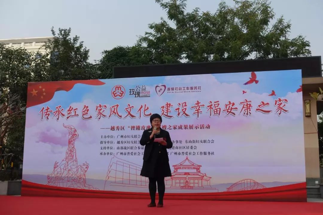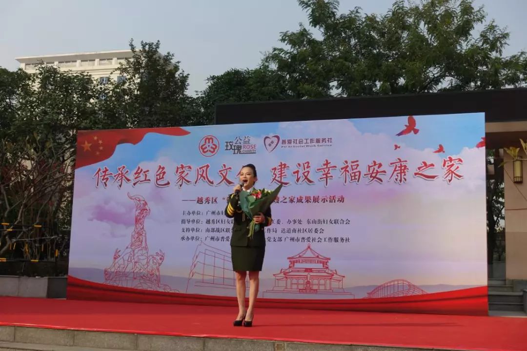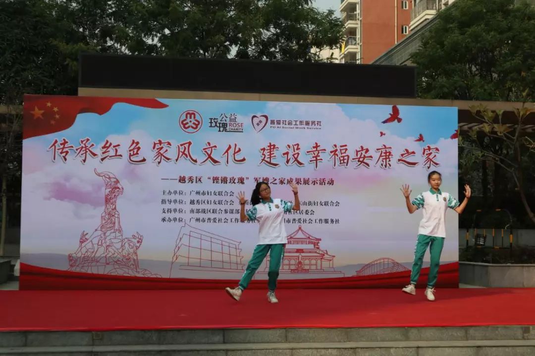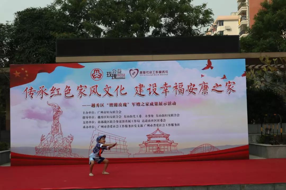 项目从2019年6月开始,为期半年。近日,广州市普爱社会工作服务社在东山街达道南社区军民共建文体广场开展了“传承红色家风文化,建设幸福安康之家”越秀区“铿锵玫瑰”军嫂之家成果展示活动,通过回顾军嫂之家项目成果及服务成效,展示军嫂家庭精神面貌与风采,发挥榜样力量。本次活动吸引了200多名军嫂、军属参加。