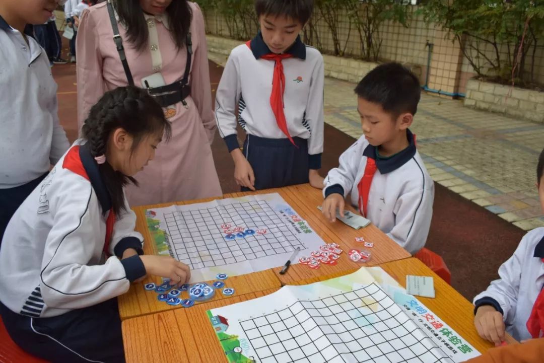 此外,活动现场还设立了文明交通体验营,通过交通安全飞行棋真人游戏、文明交通五子棋游戏、交通标识对对看、交通知识拼多点趣味竞赛、交通安全车辆盲区查询点和交通安全《西游记》绘本阅读等6个游戏,让学生在轻松的游戏互动中学习体验交通安全知识。
