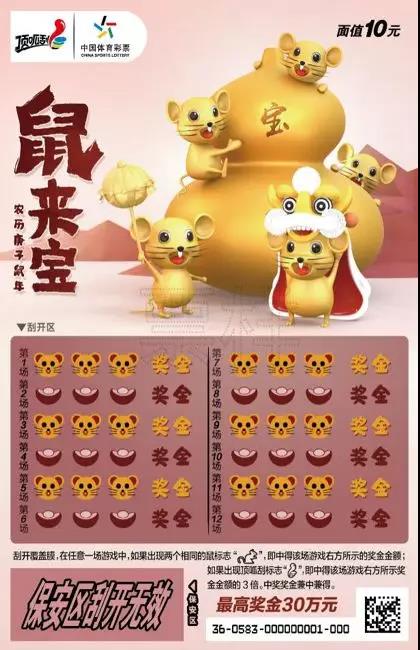 既然说到生肖,作为明年一整年的主角,小老鼠那肯定得单独“出镜”,不用提醒,顶呱刮早就给安排上了,这款票还有个好听的名字叫“鼠来宝”。票面不仅把如意、元宝、金葫芦等元素融入了进去,还有着吉祥如意、招财进宝、富贵吉祥等美好的寓意,更借用了中国传统曲艺“数来宝”的谐音,鼠年行大运送来聚宝盆,又是一款满满“中国范儿”的精心之作