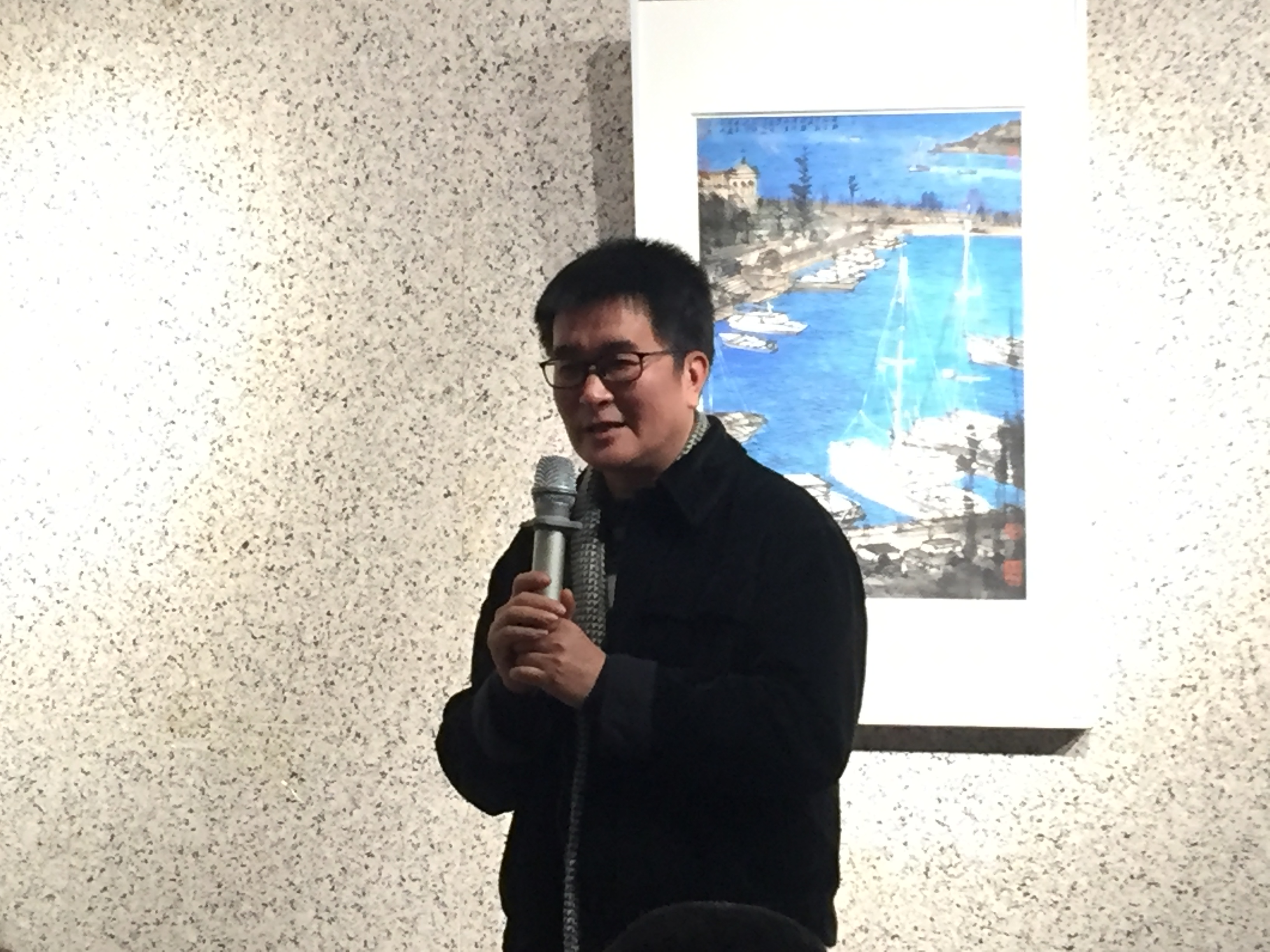 广东岭南美术院院长阎义春感谢到场的嘉宾和参展画家,提到美术院在学术上担负的职责和重任,并给予了未来美好的希冀。