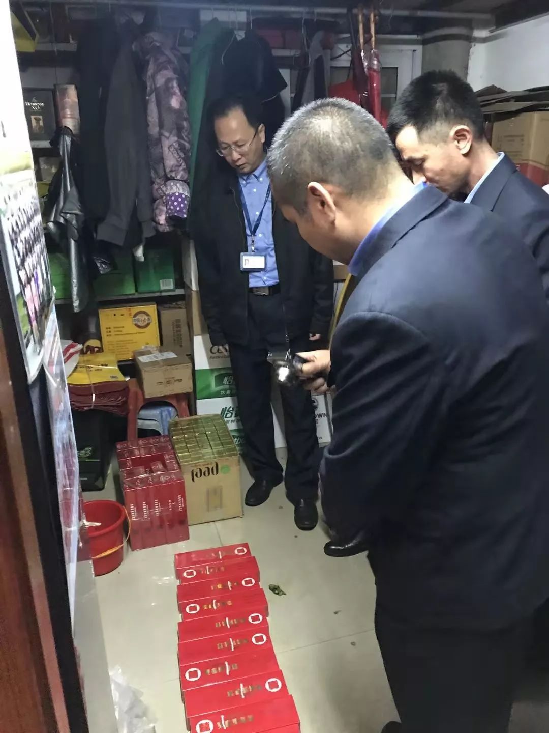 位于凤仪东路五巷的一商铺储存有无中文标识洋酒和走私香烟,走私香烟已由区烟草稽查执法大队先行登记保存,无中文标识洋酒已由街口市场监管所先行登记保存。