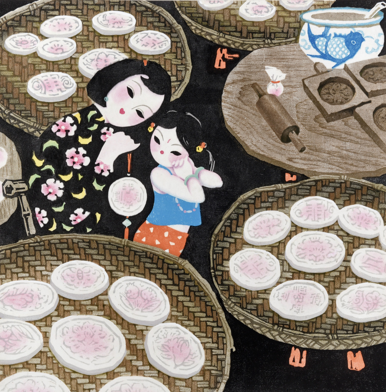 第一眼看到许川如的版画作品,会感觉到美好、纯真、浪漫,再仔细一琢磨,又会感觉到他在色彩、构图上,既新鲜又别致。事实上,回看许川如的艺术创作历程,会发现,他一直都在努力自我突破。因此,他的作品《甜遍江南》20世纪70年代末就被选送到世界各地巡展;他创作于20世纪80年代的《中秋月》,到了2006年也仍然能入选九年义务制教育美术教材。