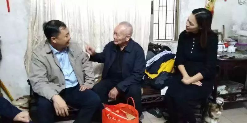 街道办事处主任陈裔东和党政办副主任、四级调研员罗曼华探望老党员陈永泉。