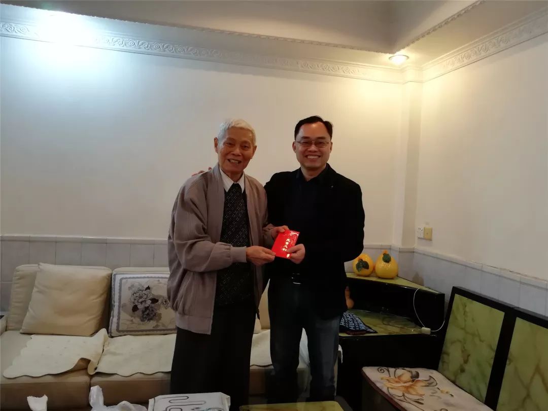 周振忠委员与钟叔亲切交谈,详细了解他的家庭情况和身体近况,并提前祝他新年快乐。最后,周振忠委员和华泉社区党总支给老党员送上了节日慰问金以及面条、牛奶等慰问品。
