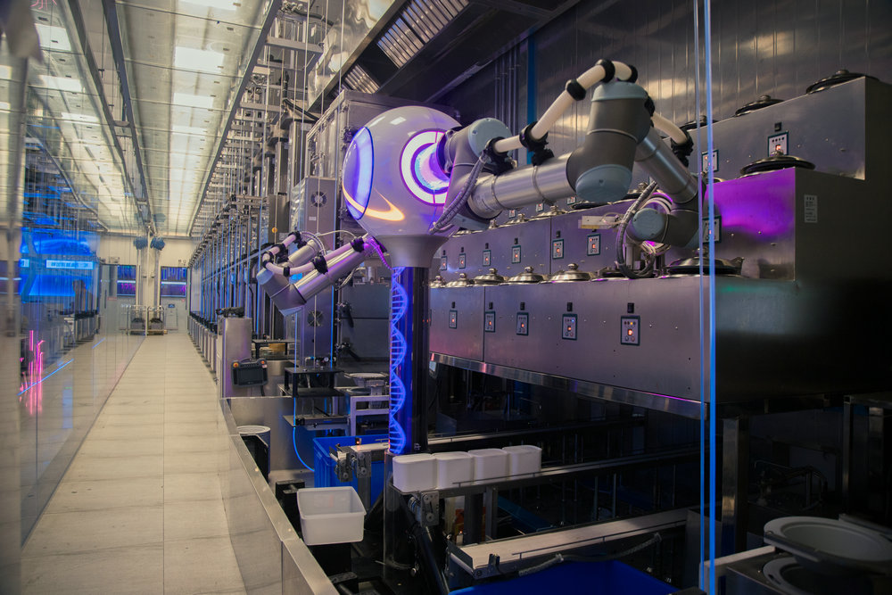 在机器人餐厅用餐是什么感觉?汉堡从下单到出品只要90秒。32口炒锅可以同时、不间断制作,单一菜品平均烹饪时间仅需3-5分钟。
