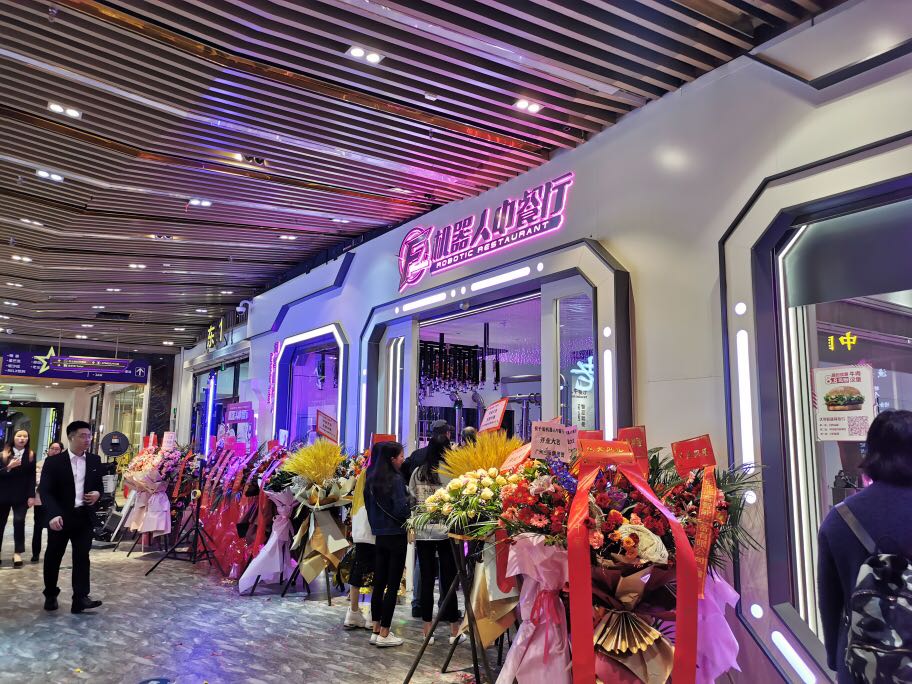 煲仔饭机器人拥有24个煲位,效率远高于传统煲仔饭烹制模式。双臂煎炸机器人、双臂甜品机器人、调酒机器人能实现秒级出品。从下单到送菜的高效率是机器人餐厅能得到的直观感受。AGV送餐机器人沿着头顶上方的云轨不停忙碌穿梭,从天而降带来刚出炉的菜品,被挡了路会说请让一让的送餐机器人,自动到达桌边,只需按按桌面按钮就能打开面罩取出菜品,带来的则是新奇的互动体验感。