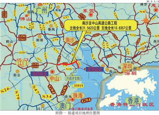 1月6日,广州交通投资集团发布南沙至中山高速公路环评报告公示。该项目位于广州市南沙区和中山市,途经南沙区、中山市民众镇和港口镇,将建设包括南沙至中山高速公路主线、万顷沙支线两部分。拟建项目全长约32.4千米,设置桥梁50座(含互通立交主线桥),其中特大桥3座,大桥47座。主线共设互通7处(1处预留),万顷沙支线共设互通2处。全线设管理中心1处,养护工区2处,稽查站1处,服务区1处。同步建设必要的交通工程和沿线设施。施工期计划自2020年至2024年。