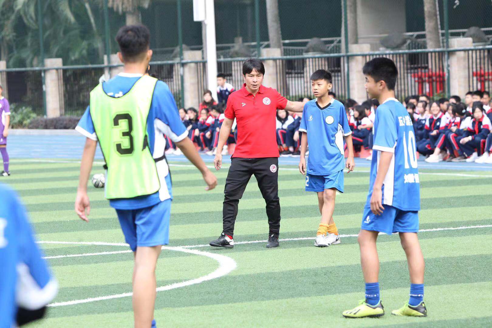 彭伟国率岁月明星俱乐部教练团队与五中滨江学校的校队进行了一场表演赛