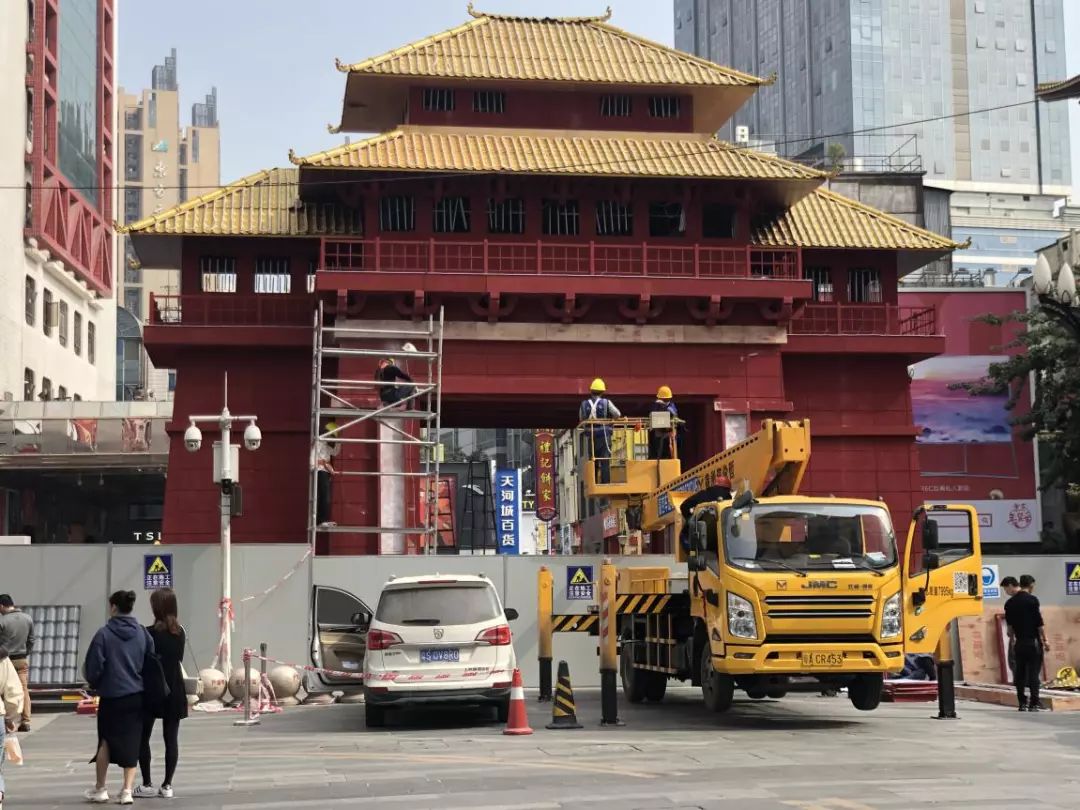 (2020越秀西湖花市牌楼正在搭建中)