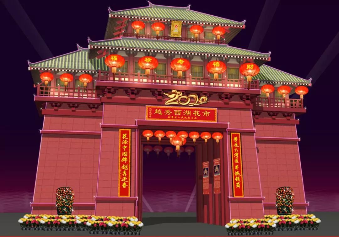 越秀西湖花市享有“百年花市”的美誉。2020年,越秀西湖花市主牌楼以南越王宫城门楼为主体造型,生动展示越秀区作为广府源地、岭南核心的文化历史底蕴。