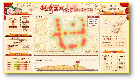 采用基站+视频分析等大数据手段,对花市人流数据、人流密度、客户画像进行实时分析,精准分析预判助力花应急调度指挥,以高科技护航,打造安全花市。