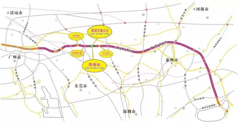 该立交距离北三环枢纽立交(石滩立交)2.9km两立交净距离约1.4km;距离广惠三江立交4.5km,两立交净距离3.6km。