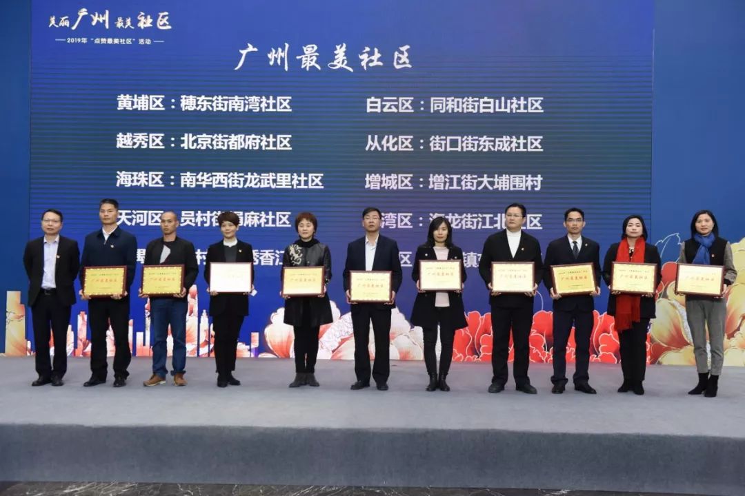 1月19日,由广州市文明办指导、广州市区融媒体中心客户端“新花城”、广州日报报业集团微社区e家通联合举办 的“点赞最美社区”颁奖典礼举行。黄埔区穂东街南湾社区等10家社区获评为广州“最美社区”,越秀区梅花村街梅东社区等10个社区被评为广州 “最具特色社区”。