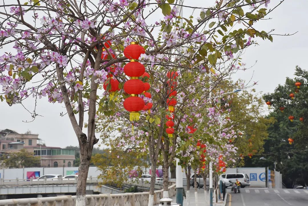 红灯笼+正在盛开的宫粉紫荆↓