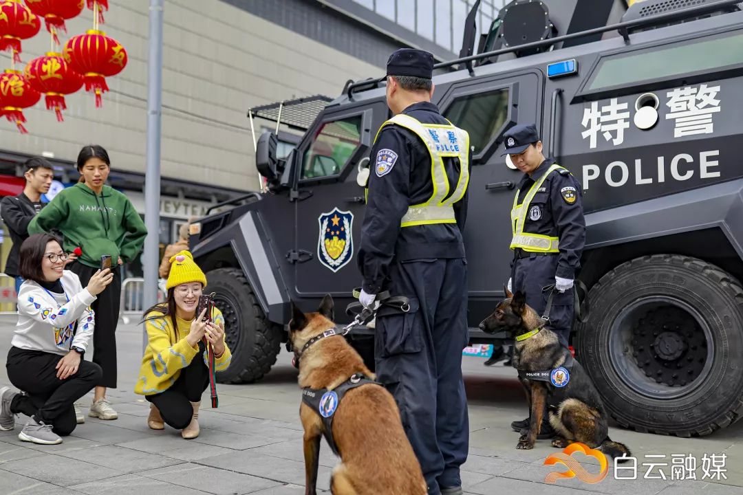 白云区公安分局的特警装甲车也霸气现身,吸引了众多市民合影留念。