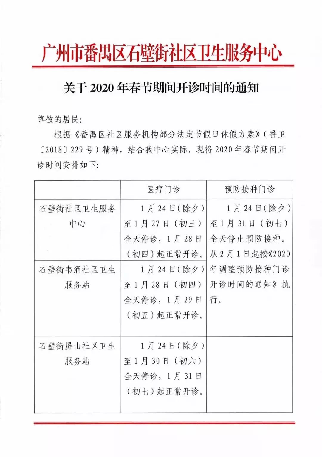 新春将至,番禺区石壁街政务服务中心、石壁街社区卫生服务中心有如下放假安排。