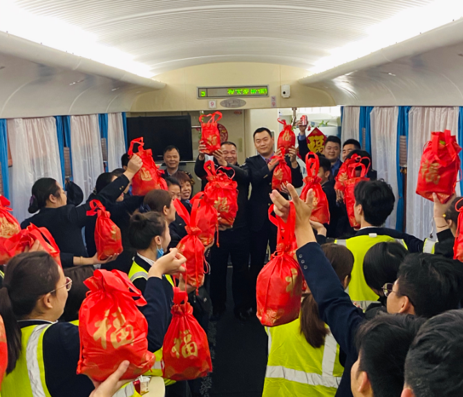 “火车上的年夜饭虽比不上家里的丰盛,但气氛却热闹得很。”老谭说,Z202次列车从三亚发出前,列车工作人员会会将餐车装扮一番:铺上粉色的桌布、粘贴对联、悬挂福袋……车厢里满是浓浓的“年味”。