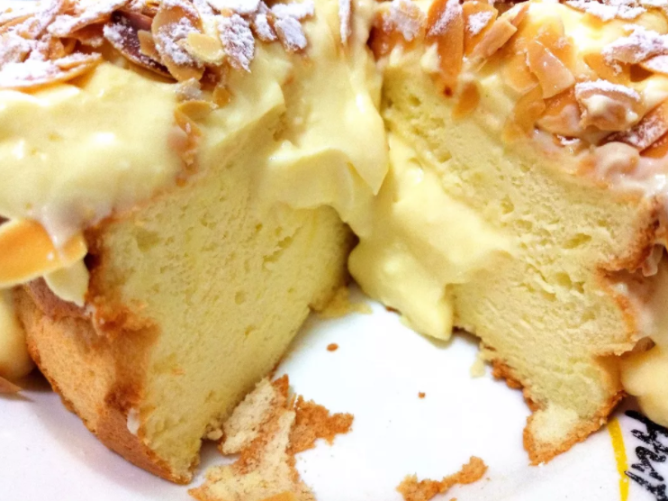 4、蛋糕体的蛋白不要打得太硬或是太软,否则容易塌腰。另外,蛋糕体一定要倒盖后,完全冷却后再脱模,否则也会出现塌腰的情况。
