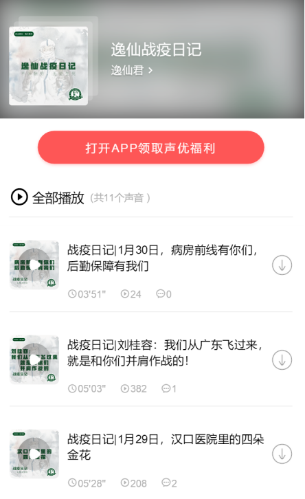 想到我们时刻挂念的驰援医护人员,中山大学孙逸仙纪念医院与荔枝FM推出了有声的逸仙战疫日记,用声音记录驰援武汉一线的日与夜。(点击收听)
