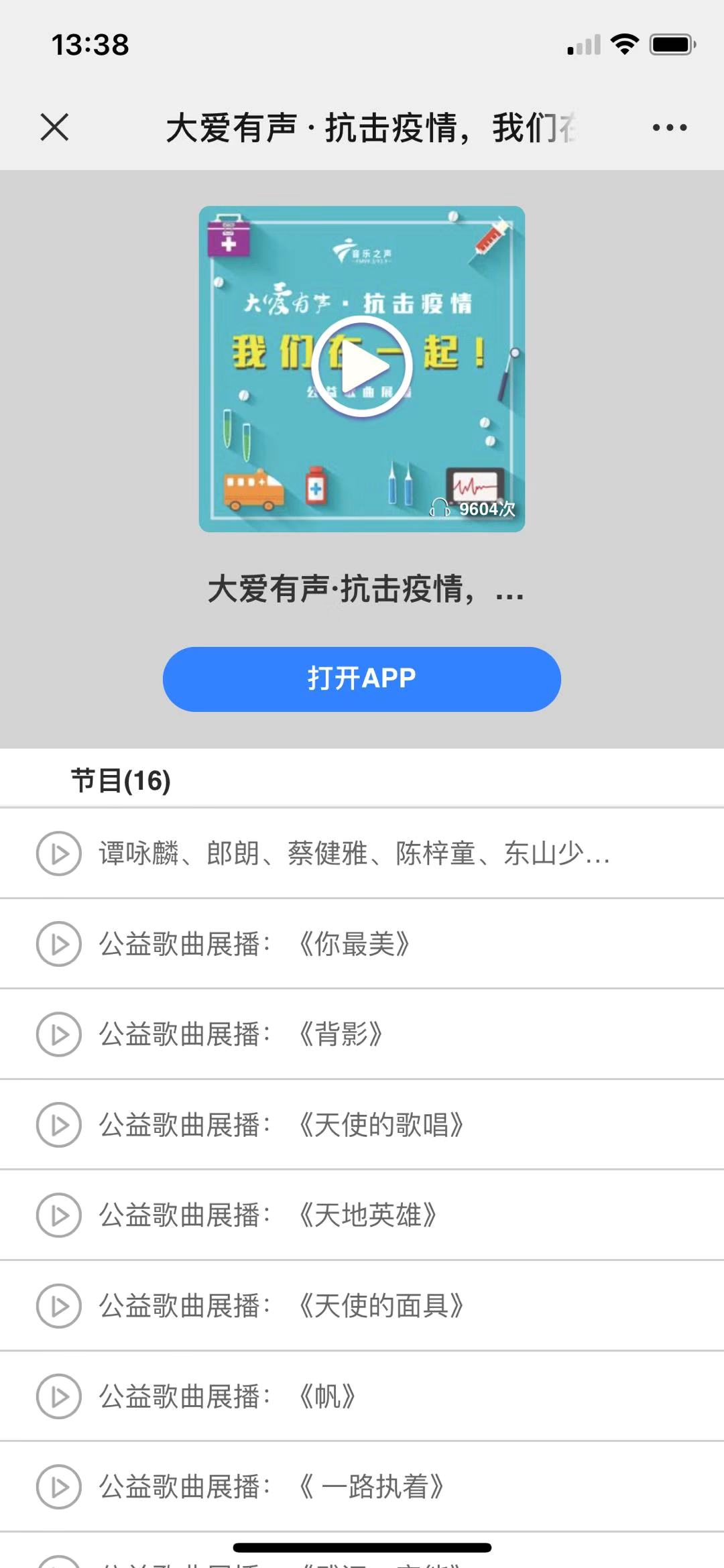 “大爱有声·抗击疫情我们在一起”公益歌曲展播栏目