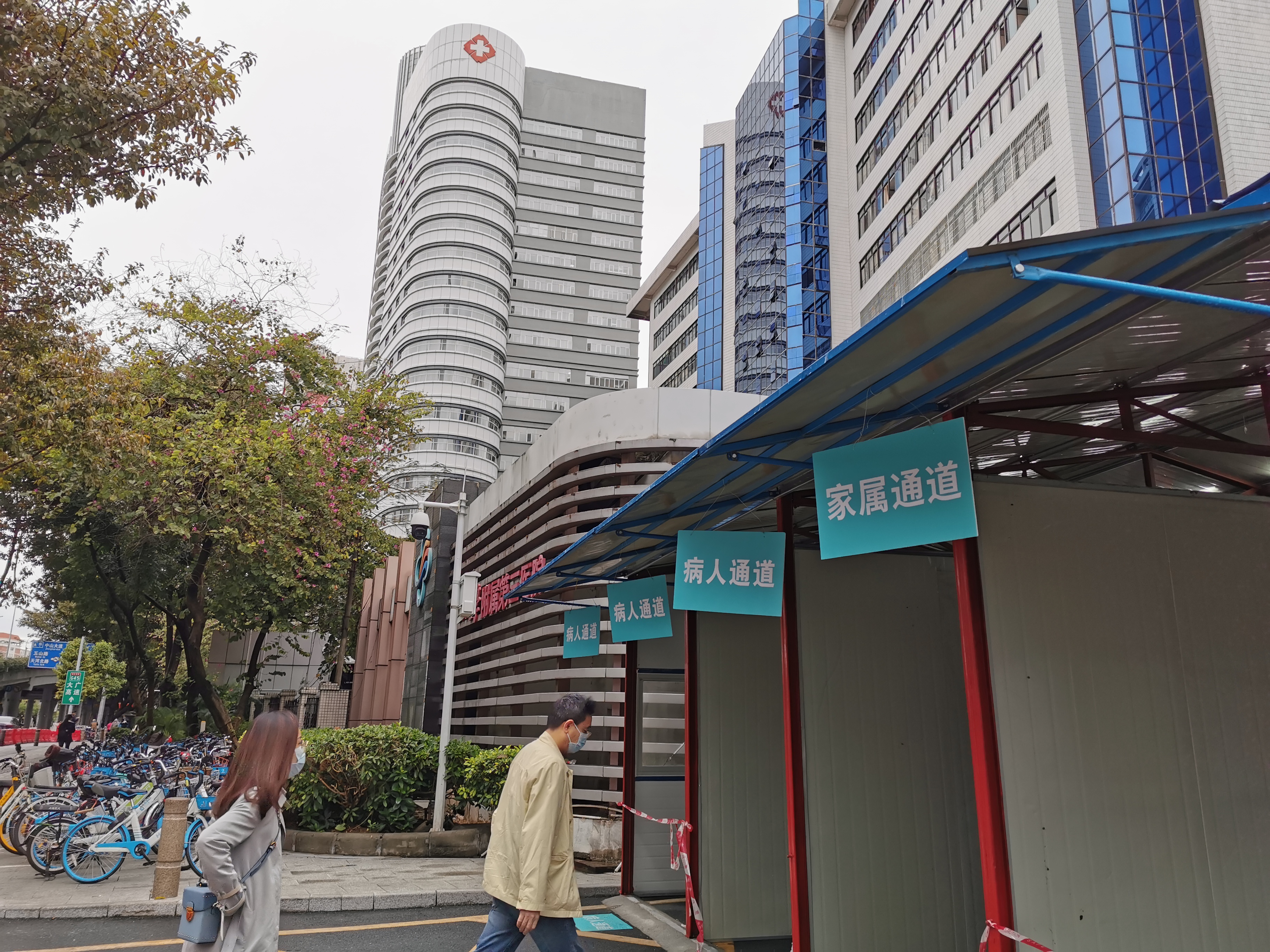 记者看到,天河院区封闭了医院位于石牌东路的3号大门,位于岗顶地铁口旁的医院1号门只进不出,1号门东侧的2号门只出不进。行人通道则进一步对病人和家属分流,设置类似安检门的自动探热门,发热病人进门后立即进行预检分诊,严防交叉感染。