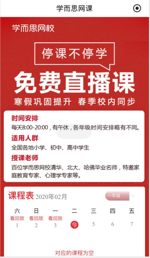 学而思网校“停课不停学-免费直播课”
