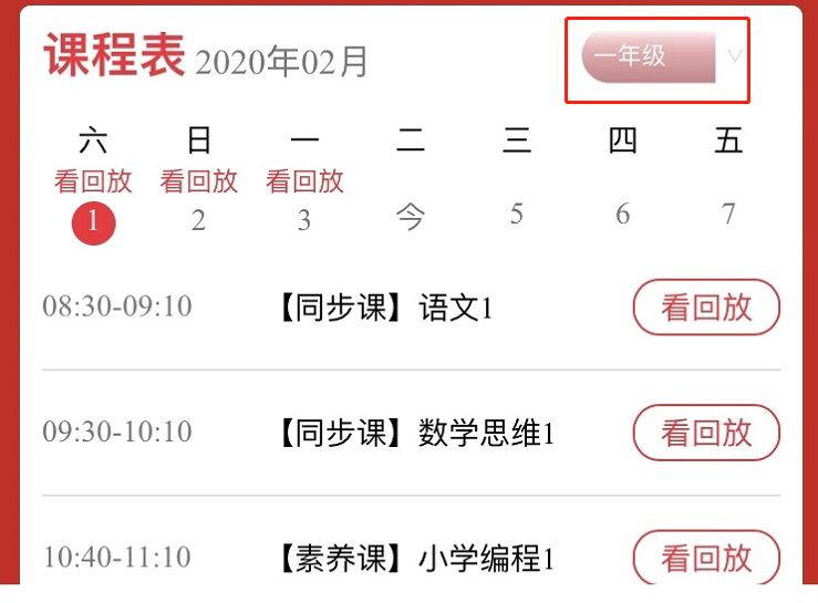 点击课程表右边选择“年级”,