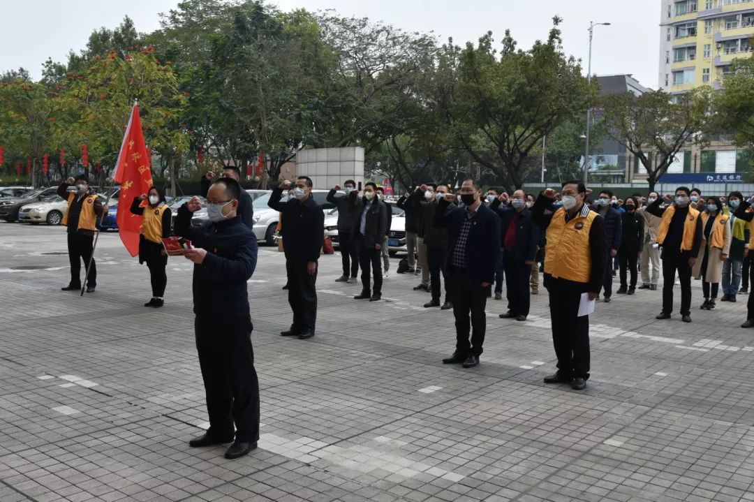 2月3日下午,海珠区直机关党员先锋队在海珠区直属机关党群服务中心正式启动。30多名队员代表统一穿着黄色马甲、佩戴红色袖章,成为寒风细雨中一道亮丽的色彩。先锋队的队长从海珠区委组织部副部长、区“两新”组织党工委书记谢强手中接过队旗,并带领全部队员重温入党誓词。此时此刻,“随时为党和人民牺牲一切”,党员们喊得格外响亮。