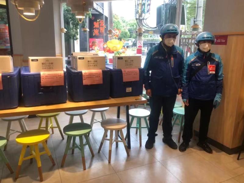 受疫情影响,连日来大多数市民自觉在家隔离。外卖小哥们成为了人们与超市、便利店之间的桥梁。他们穿梭于社区和医院,为医生和患者送去热饭,为居民们送去生活必需品。饿了么为骑手们配备口罩、手套、消毒剂等防护物资,每日早晚为骑手测量体温,严格按照防疫要求对餐箱餐车消毒,保障骑手安全和餐品卫生。
