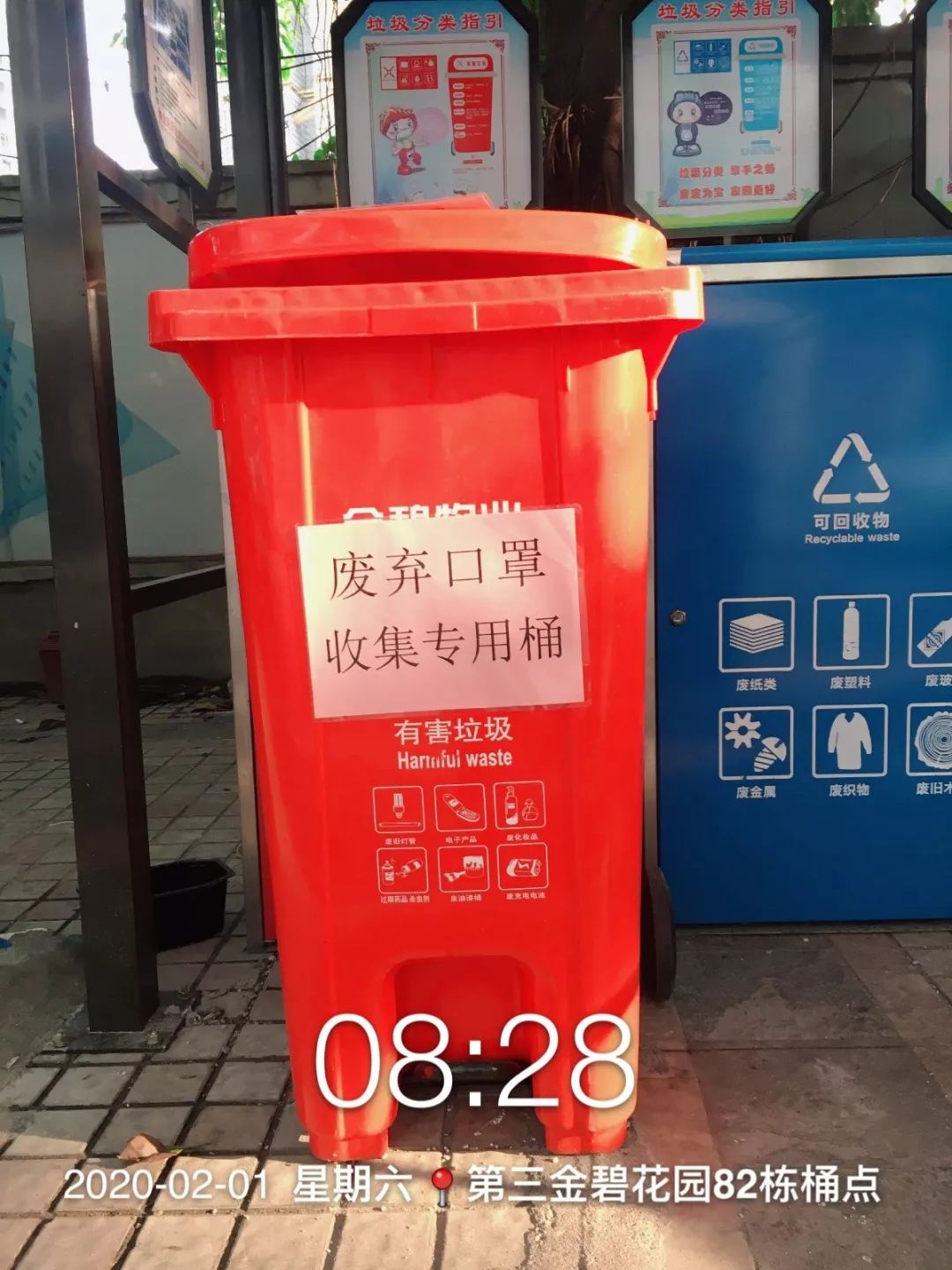 连日来,第二、第三金碧花园物业服务中心强化日常消杀,每天安排保洁员,对小区电梯、楼道、门禁把手、绿化带等区域进行多次严格的消毒消杀工作,重点消毒经常接触的按键、扶手、电梯箱壁等地方。此外,两小区均设置了废弃口罩回收点,提醒居民不乱扔口罩,并安排专人回收和处理。