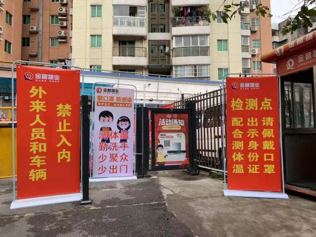 目前,第二、第三金碧花园实行封闭管理,在小区门口、各楼栋明确张贴了多份文件通知,告知居民封闭管理的注意事项,提醒大家配合防控工作。外卖员和快递员需止步小区门口,只能电话联系住户自行提取,或由物业工作人员代为送达。