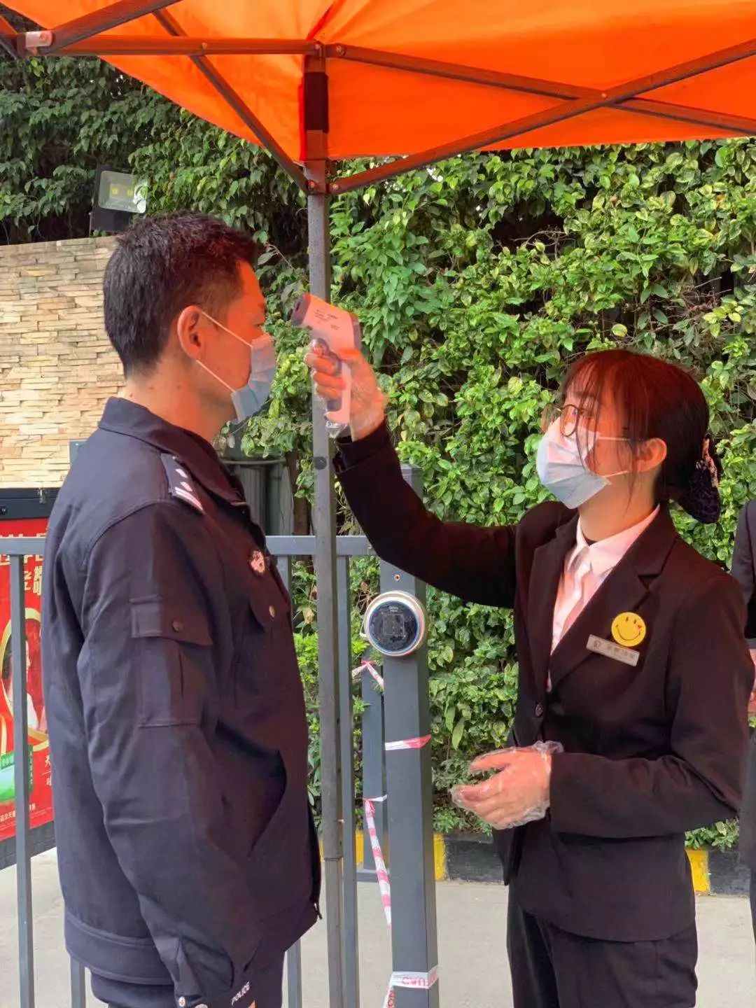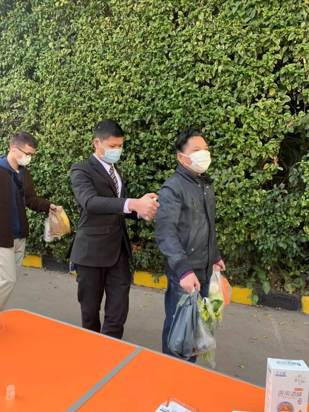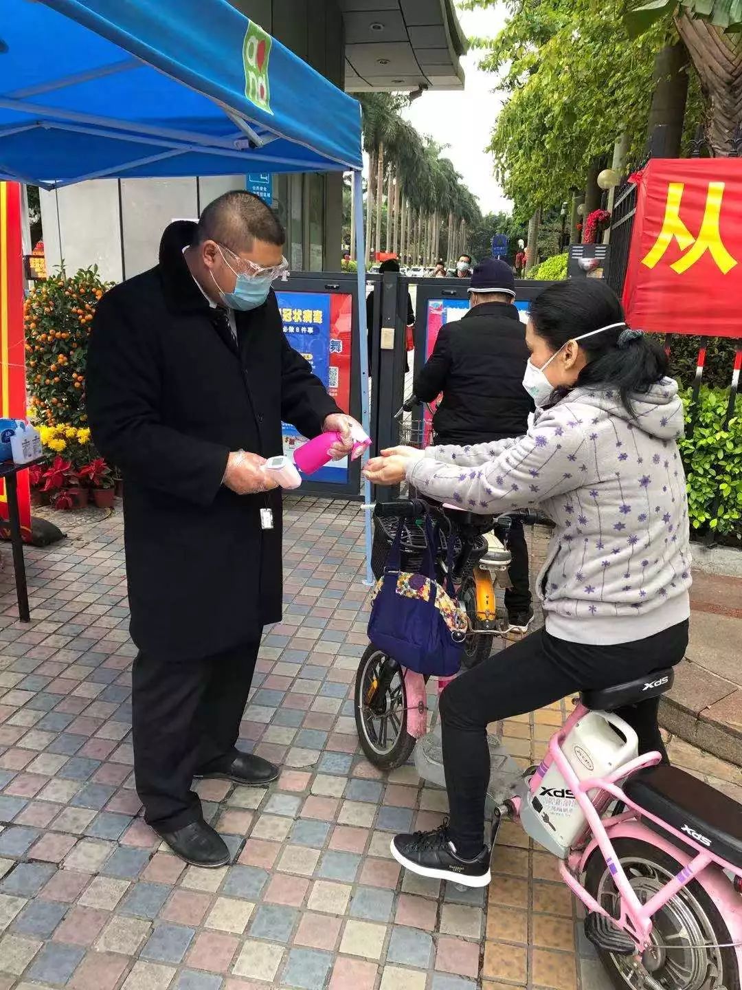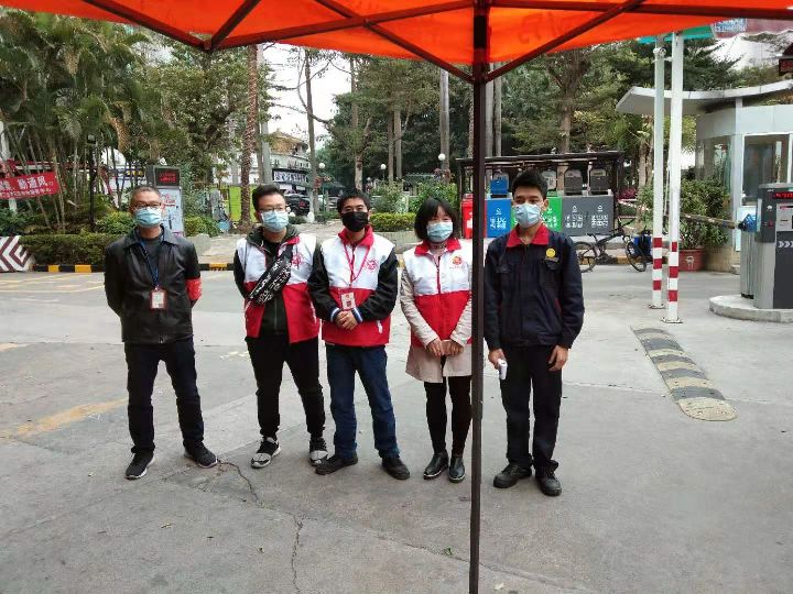 在小区出入口,物管人员每天24小时值守,党员志愿者协助,对进入小区的住户逐一进行测体温检查,发现发热症状立即通知街道和社区卫生服务中心处理,同时做好返穗住户、进出车辆信息登记。同时,第二金碧花园住户、车辆进入小区时要进行消毒;第三金碧花园进入车辆也需消毒,并给住户喷酒精、提供免洗洗手液。