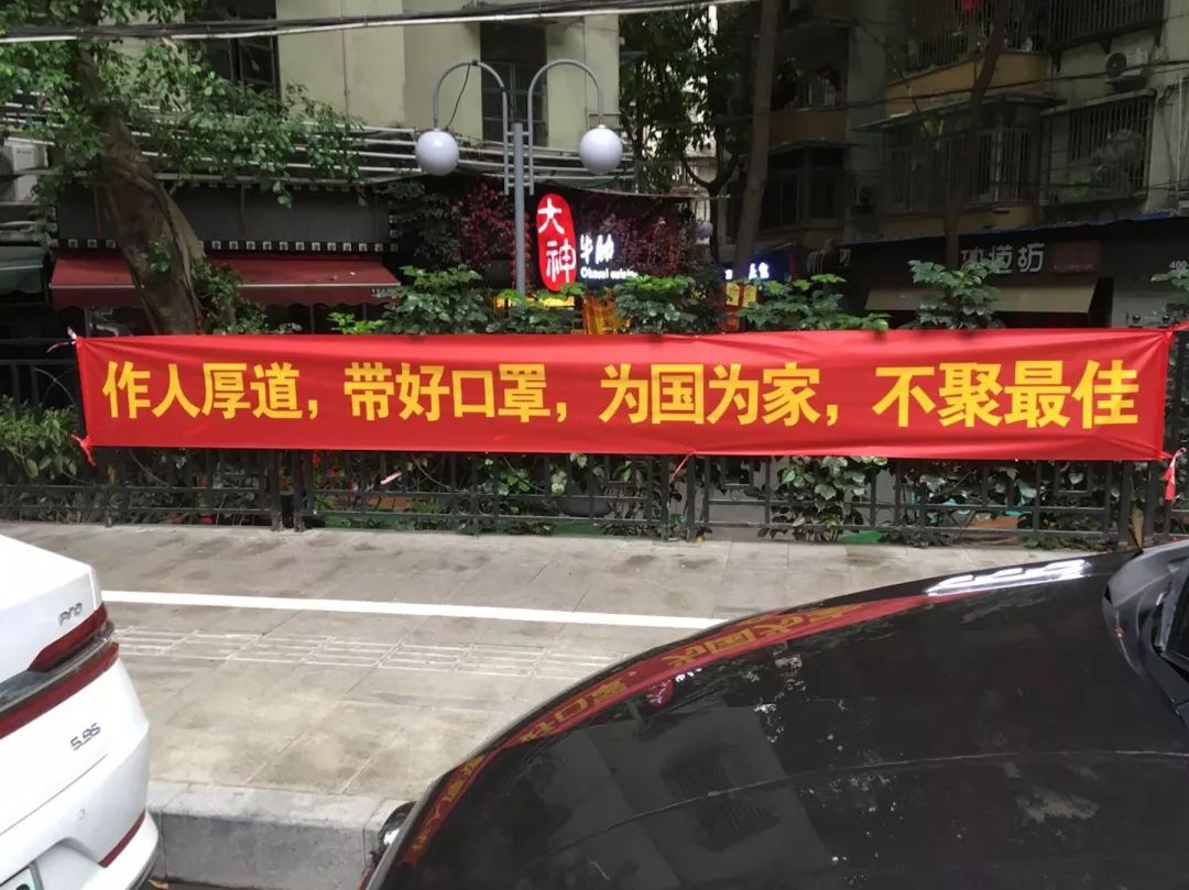 “作人厚道,带好口罩,为国为家,不聚最佳”