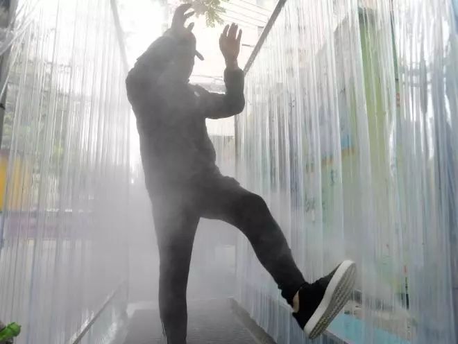 Ø 消毒通道启动,通道内开始喷洒含有消毒成分的雾气;