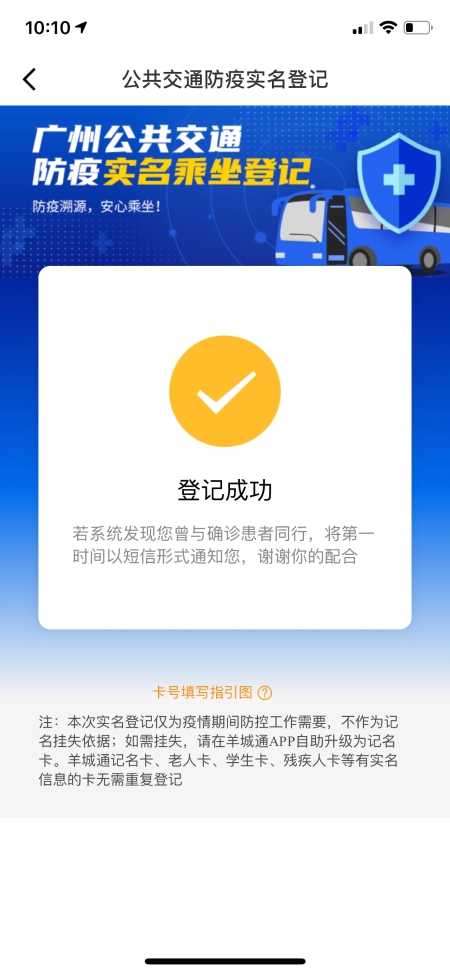 同时,羊城通App中提示,本次实名登记仅为疫情期间防控工作需要,不作为记名挂失依据;如需挂失,请在羊城通APP自助升级为记名卡。羊城通记名卡、老人卡、学生卡、残疾人卡等有实名信息的卡无需重复登记。