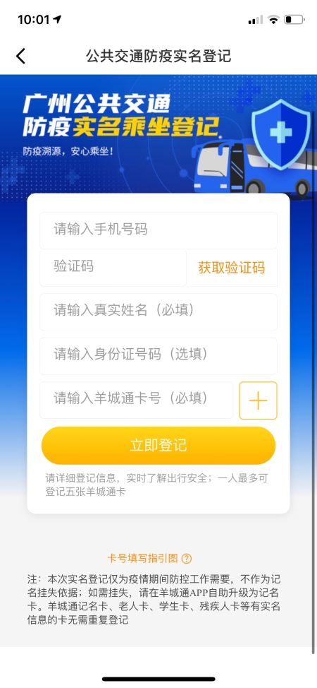 如何实名登记?在进入广州公共交通防疫实名乘坐登记页面后,需要填写手机号码,并获得验证码。同时必须填写乘客真实姓名以及羊城通卡号,选填身份证号。一人可登记5张羊城通卡。