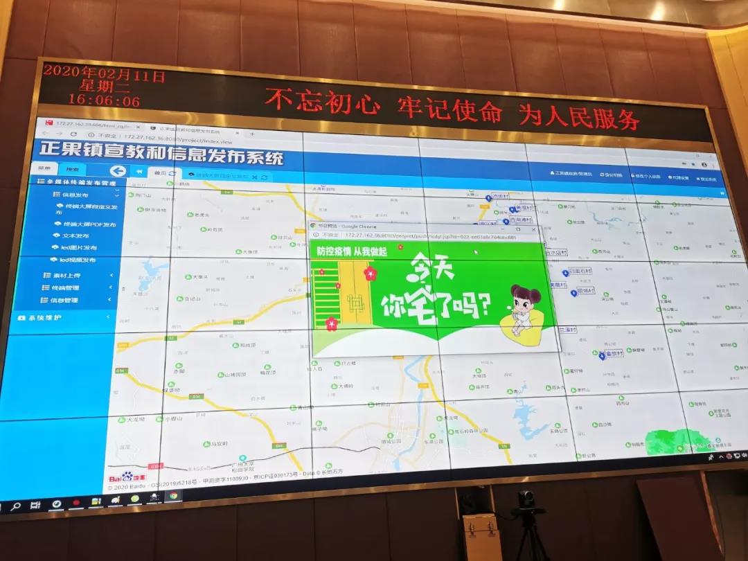 在这次疫情防控中,该镇在建立了32台移动终端大屏的基础上,利用互联网通讯技术,运用宣讲和信息发布平台进行信息发布终端远程一键式遥控、定时定点地向辖区各村(社区)委及群众即时发布有关疫情的宣教知识,以及播放如何科学预防疫情的微视频。