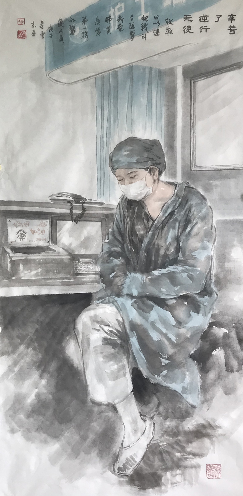 创作理念:新冠病毒爆发以来,严峻的疫情牵动着每一个国人的心,广大战斗在第一线的医务工作人员。勇敢无私的奉献,“不计报酬,无论生死”。多少感人的事例使我深深感动。多难兴邦,每一次的灾难都是对中华民族的一次考验,这些默默无名的人就是中华民族的风骨,国家之脊梁。