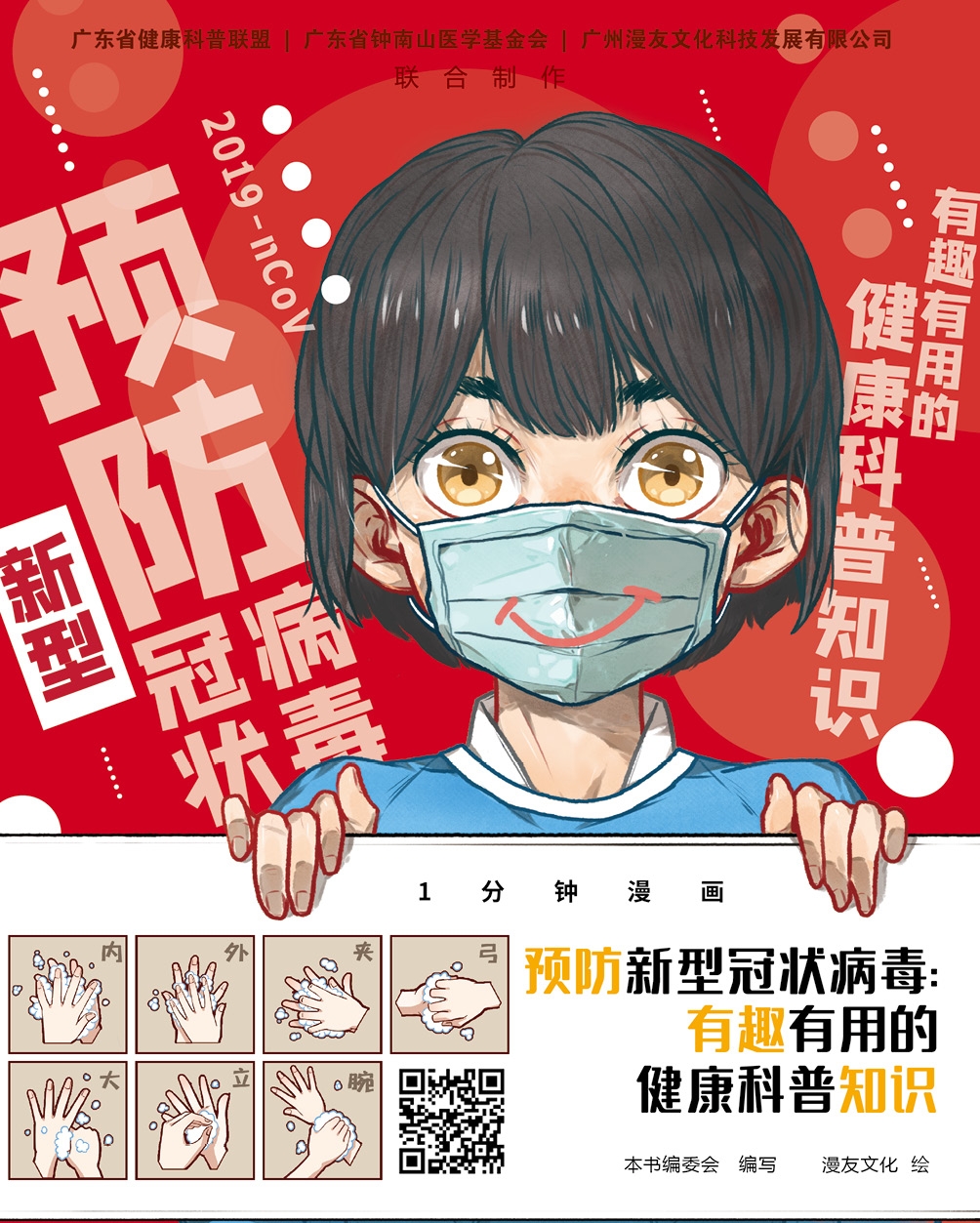 在广东省科学技术协会与广东省科学技术厅的指导,以及广州市人民政府新闻办公室与广州市文化广电旅游局的支持下,由广东省健康科普联盟进行内容审定,广东省钟南山医学基金会参与制作,国家级重点动漫企业漫友文化组织知名漫画家进行绘制的关于抗击“新型冠状病毒(2019-nCoV)”疫情的知识漫画书《预防新型冠状病毒——有趣有用的健康科普知识》,日前由广东省出版集团新世纪出版社出版。