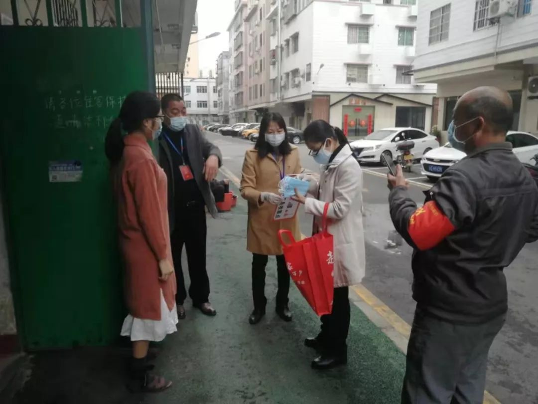 ▲党员挨家挨户给市民送口罩、派宣传单。