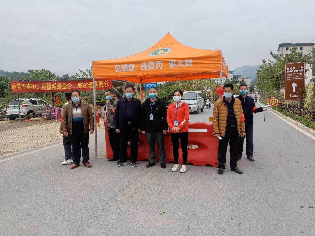 ▲村干部、党员群众等在路口值守,为进入景区的行人、驾乘人员测量体温,问询健康情况。
