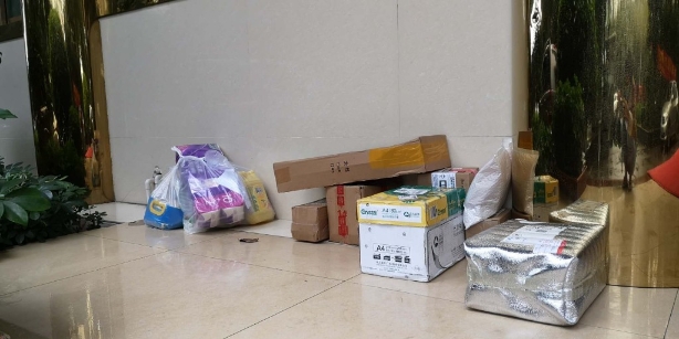 据保安介绍,疫情期间,快递量和平时差不多,但是日用品的快递明显减少了,生鲜食品快件增加了。