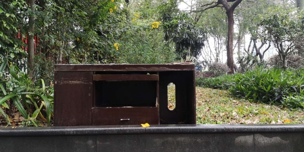有些居民取件后,会将快递的包裹、纸箱等去掉,拿自己购物袋子装回家中。记者在现场,就没有发现垃圾桶。一些居民只能将弃置的纸箱放在绿化带上。