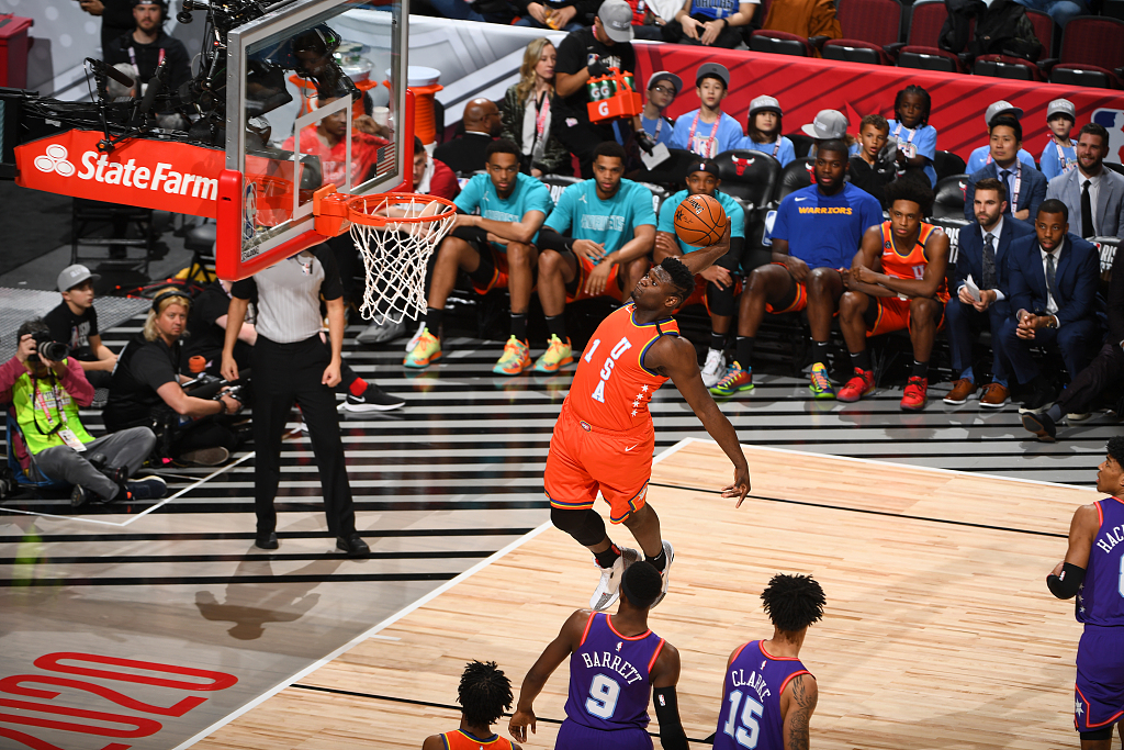美国队这一次的阵容颇为豪华,拥有杨、莫兰特、锡安等人,而世界队则是东契奇、巴雷特领衔。值得一提的是,在新秀赛赛前,每一次美国队训练集合结束后,他们都会喊一个口号,"Mamba",对科比进行致敬。